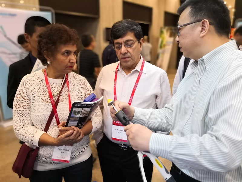 健瑞宝医疗接待了来自全国各地600多位专家学者,他们参与了公司的互动活动。 在展位上健瑞宝医疗总经理晁浩和副总陈协,和与会代表一起共同探讨普外科的新进展以及外科技术的相关问题。