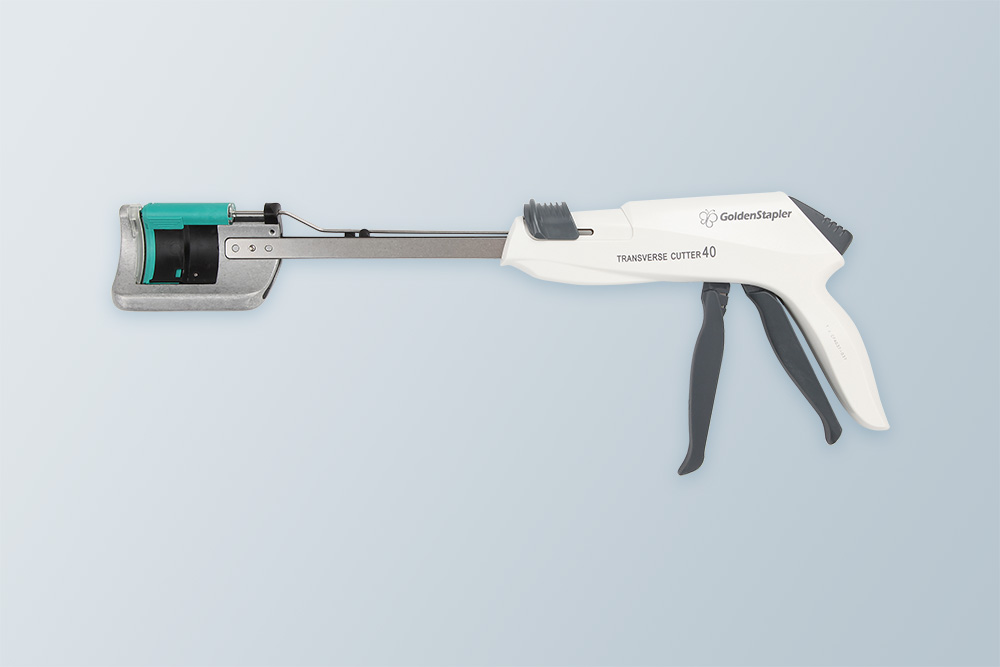 When using total mesorectal excision technique (TME) for low anus-preserving surgery for rectal cancer, due to the small pelvic space, the surgeon needs a medical device that can reach the deep pelvic, as far away as possible from the tumor site, and traverse the distal rectum, and can provide a good surgical vision to see the operation process. The Single Patient Use Transverse Cutter and Reload developed by GoldenStapler can meet the surgeon's requirements for instruments. The curved small head occupies a small space, easier for vertical placement into deep pelvic and provides a relatively long curved cutting and stapling line; the curved inner side provides a very good surgical vision.
